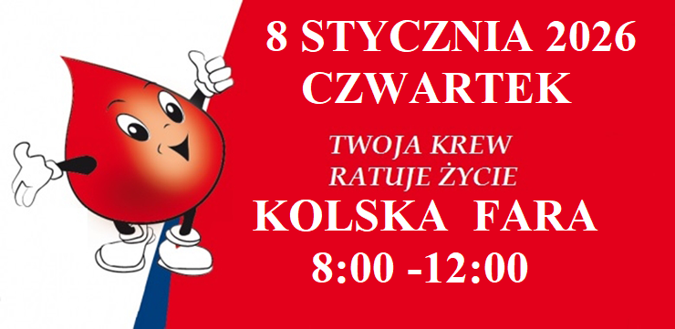 Krwiodawstwo w Kole serdecznie zaprasza na kolejną akcję oddania krwi - 8 stycznia 2026 roku (czwartek) - Dom Parafialny przy Farze Kolskiej. Jest to kolejna okazja, aby czynić dobro, aby dzielić się sobą.