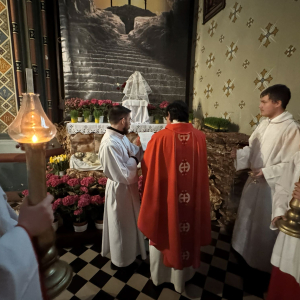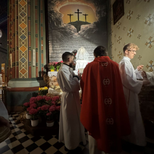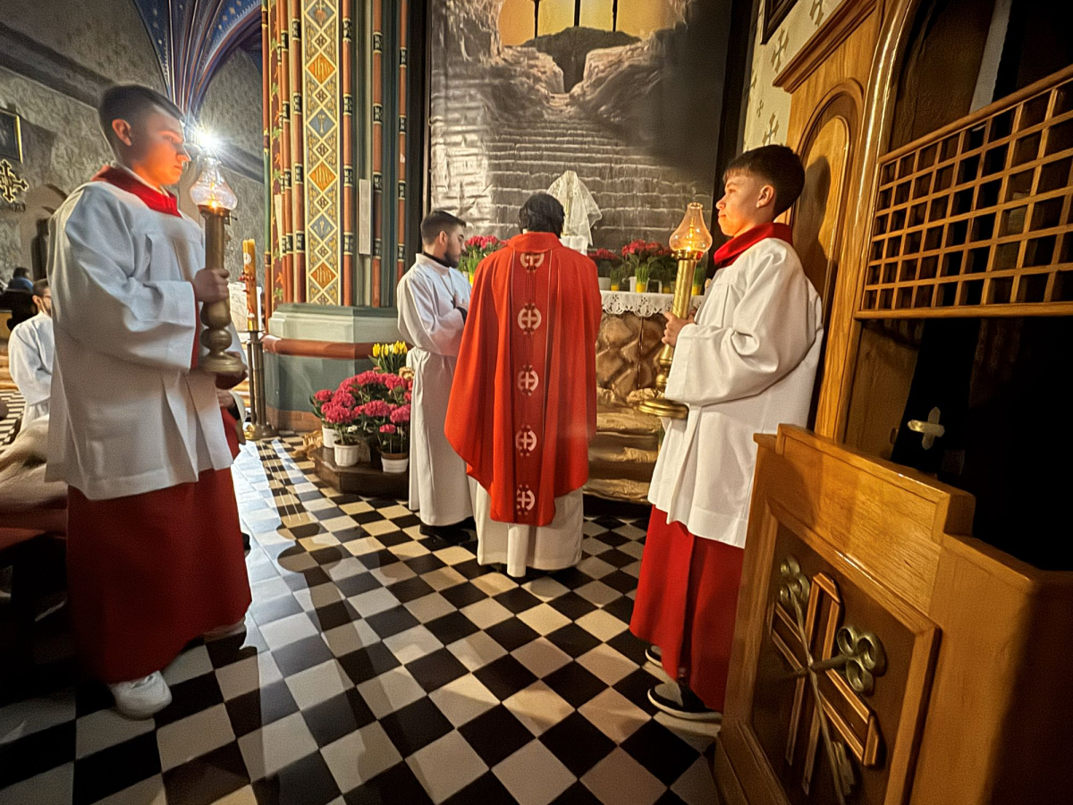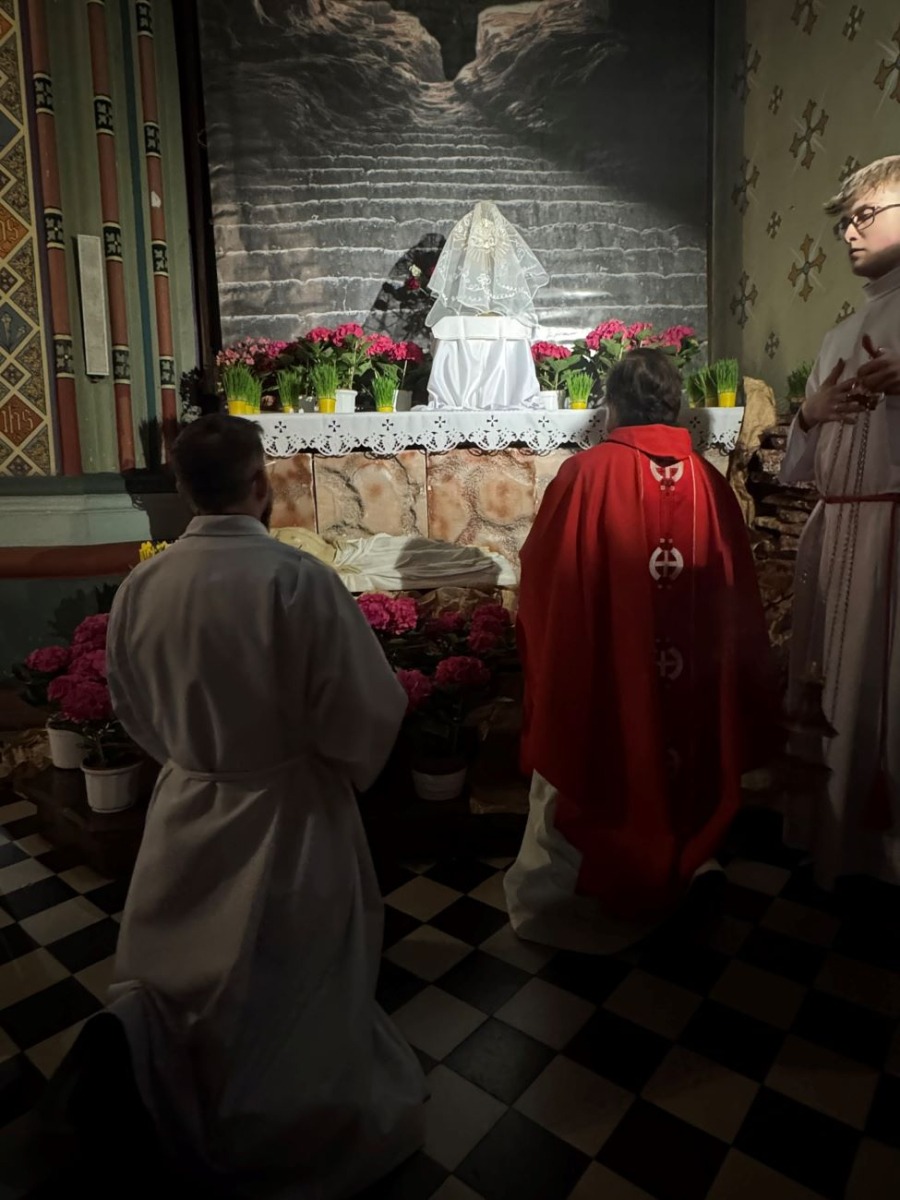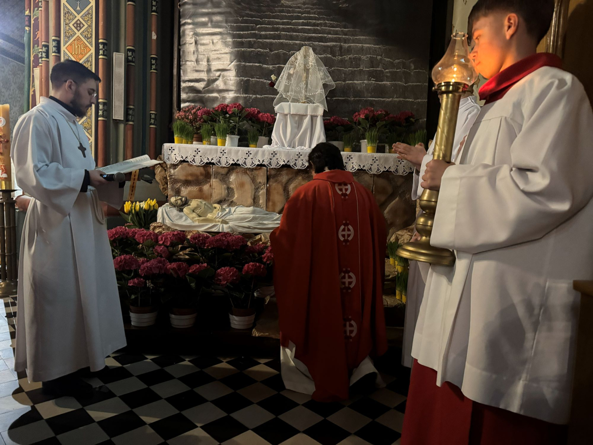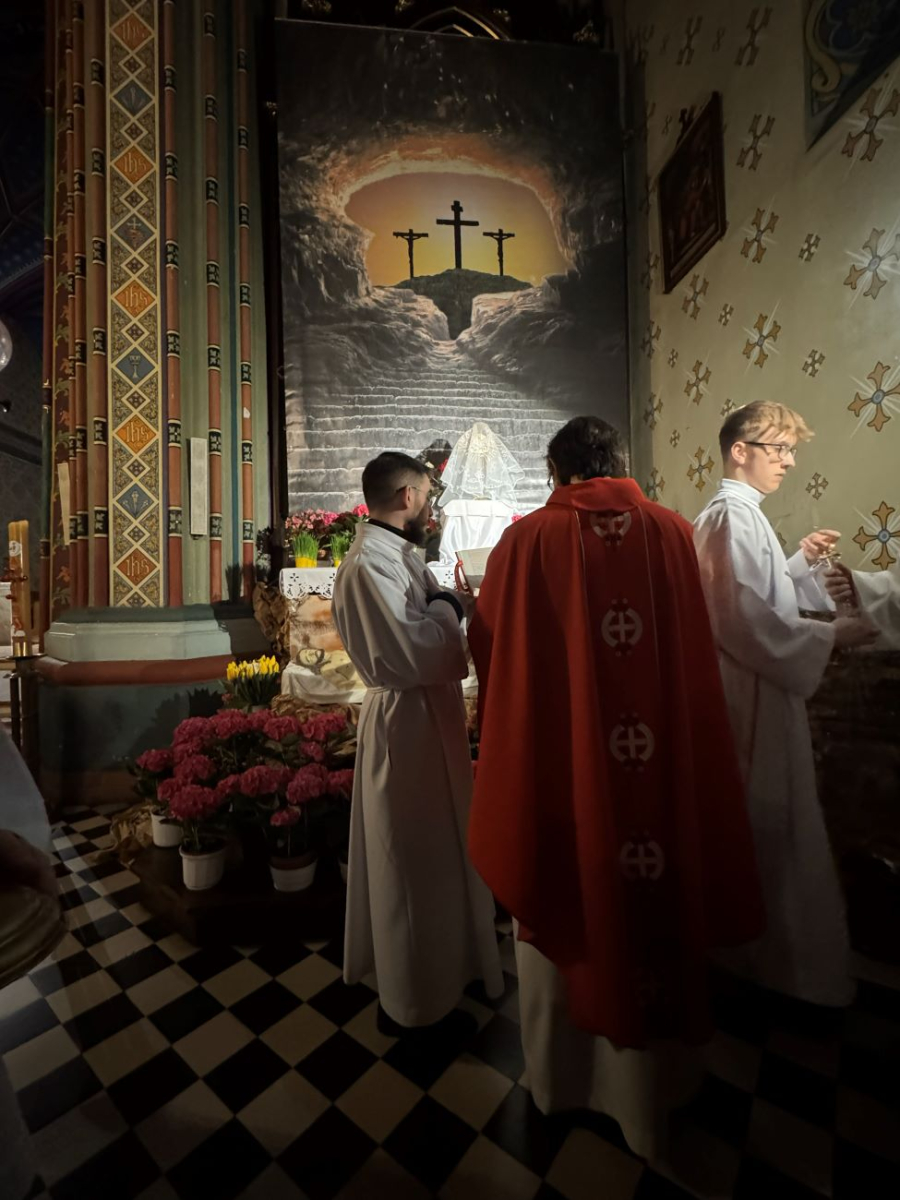 Wielki Piątek to dzień upamiętniający mękę i śmierć Jezusa Chrystusa na krzyżu. Jest to drugi dzień Świętego Triduum Paschalnego, czas żałoby, ścisłego postu i adoracji krzyża, podczas którego nie odprawia się Mszy Świętej. O godz. 15:00 w naszej świątyni łączyliśmy się z cierpiącym Chrystusem uczestnicząc w nabożeństwie Drogi Krzyżowej. Natomiast o godz. 18:00 uczestniczyliśmy w Liturgii Męki Pańskiej, którą poprowadził ks. kanonik Eugeniusz Strzech - proboszcz Parafii.